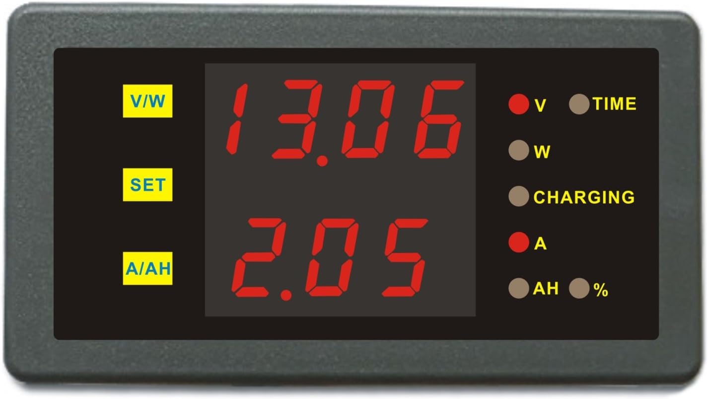 The DCM9040 Battery MonitorThe unit is designed to monitor performance most kind of battery systems, it continuously monitors voltage, discharge current, number of power, consumed amp hours, these information leads to more efficient use of the battery, which can enhance battery life and reduce the risk of failure. Combines many functions in one, Dual display. *Voltage (V), Power (W), Current (A), Ampere-hour (Ah), Working Hours (H). It is equipped with an internal programmable alarm, to run a generator when needed or to turn off devices when the battery voltage exceeds programmable boundaries (relay required).*[OVP] Over Voltage protection *[LOP] Low Voltage protection *[OCP] Over Current protection *[OAH] Over Charge protection *[OPP] Over Power protection *[OFT] Over Time protection Flexible On-line calibration function, calibrate Voltage and amps reading easily. Adopting modular design, collocate indicator lights on the panel for various working status 4 digits LED, High accuracy It can measure currents up to 400 amps, capacity up 999 amp hours. It can be powered by the same source being measured(5-40V). It is easy to enable simple DIY installation. Technical Specification Power Supply: 5~40V (external/Internal power supply) Measuring range: 0-90V/0-500A (external power), 5-40V/0-500A (external power) Display Type: 7 segment 4digits Red LED Sampling rate: 5 readings per second Accuracy: Volt ± 0.1% + 2byte / Amp ± 0.5% + 3byteResolution: 0.01V, 0.01A, 0.01W, 0.01Ah, 0.01H Package including 1x Battery Monitor 1x Shunt 1x Installation instruction