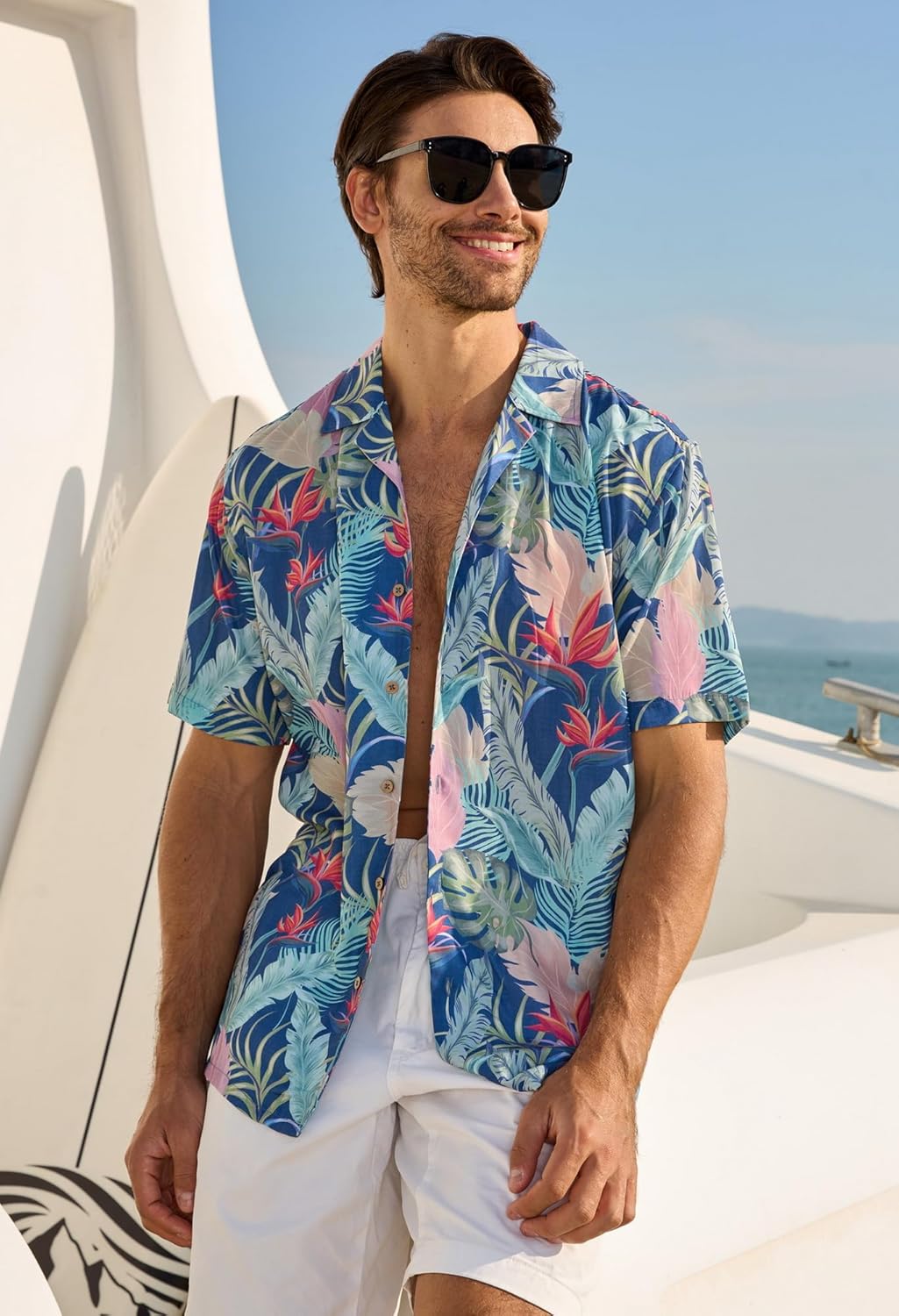 Stylish Tropical Vibes:Perfect for Summer Fun Embrace island life with our Hawaiian shirt, designed with vibrant tropical prints that turn heads at beach parties, BBQs, vacations, or just casual days in the sun. It’s your go-to summer essential!