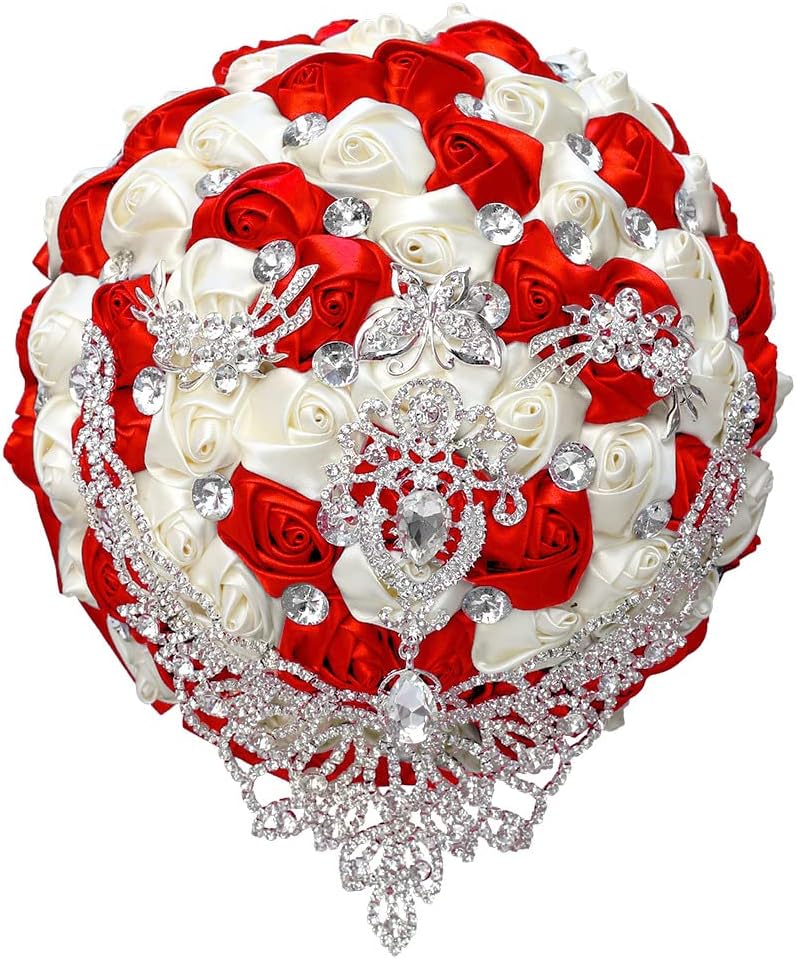 Recommend 5.9 inch mini bouquets for toss use, 7.1 inch small bouquets for bridesmaids and 8.3 inch or 9.4 inch big bouquets for the bride