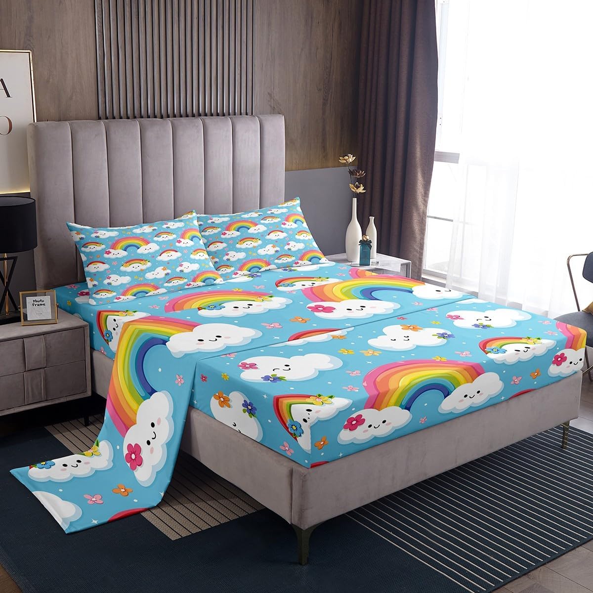 Package Include:1 x fitted sheet,1 x flat sheet,Pillowcase; Our high quality designs match any decor. High Quality Fitted Sheet Set Pattern Bedding Set, simply decorating your rooms any time you want, bringing you fresh feel for year round use. Polyester: Made from polyester microfiber, the sheet set offers strength, anatural resistance to shrinking and a noticeably soft hand feel. Size Information: Twin size 3pcs: 1 Fitted Sheet 39"W x 75"L x 16"H, 1 Flat Sheet 66"W x 96"L, 1 pillowcase 20" x 30". Full size 4pcs: 1 Fitted Sheet 54"W x 75"L x 16"H, 1 Flat Sheet 81"W x 96"L, 2 pillowcase 20" x 30". Queen size 4pcs: 1 Fitted Sheet 60"W x 80"L x 16"H, 1 Flat Sheet 90"W x 102"L, 2 pillowcase 20" x 30". King size 4pcs: 1 Fitted Sheet 78"W x 80"L x 16"H, 1 Flat Sheet 90"W x 106"L, 2 pillowcase 20" x 36". Personalize your bedroom: Beautiful design and colorful print, makes your bedroom unique and brings you a wonderful dream. Washing instructions: Machine wash separately in cold water,hang dry,do not bleach. Occasion: The soft Fitted Sheet bedding sets designed for Children ,Adult, Men, Women, Teens. This Fitted Sheet set is also suitable for full seasons, Spring, Summer, Autumn and Winter. You also can order it for your family and friends.