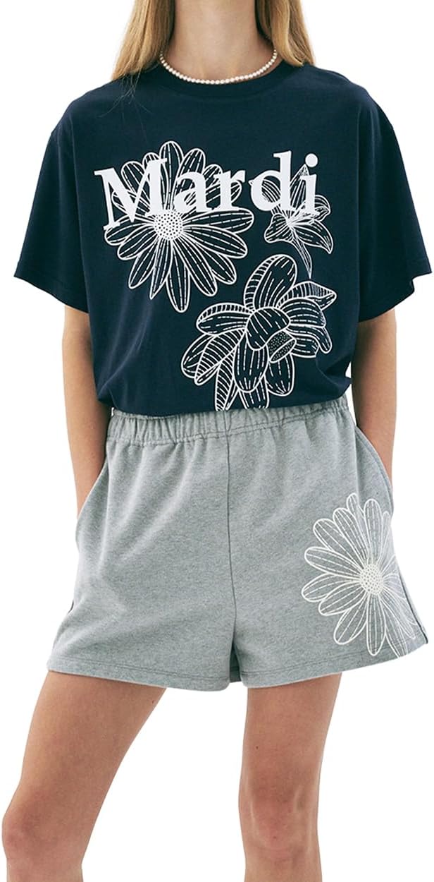 A clean-cut T-shirt with bold floral charm. The TRIPLE FLOWER T-shirt showcases three oversized flower illustrations paired with the signature “Mardi” logo, creating a graphic look that’s both striking and minimal. Cut from soft, breathable cotton in a regular fit, it falls to the mid-hip for an easy, slightly elongated silhouette. Designed to be worn tucked or untucked, this versatile top brings a statement to everyday outfits.