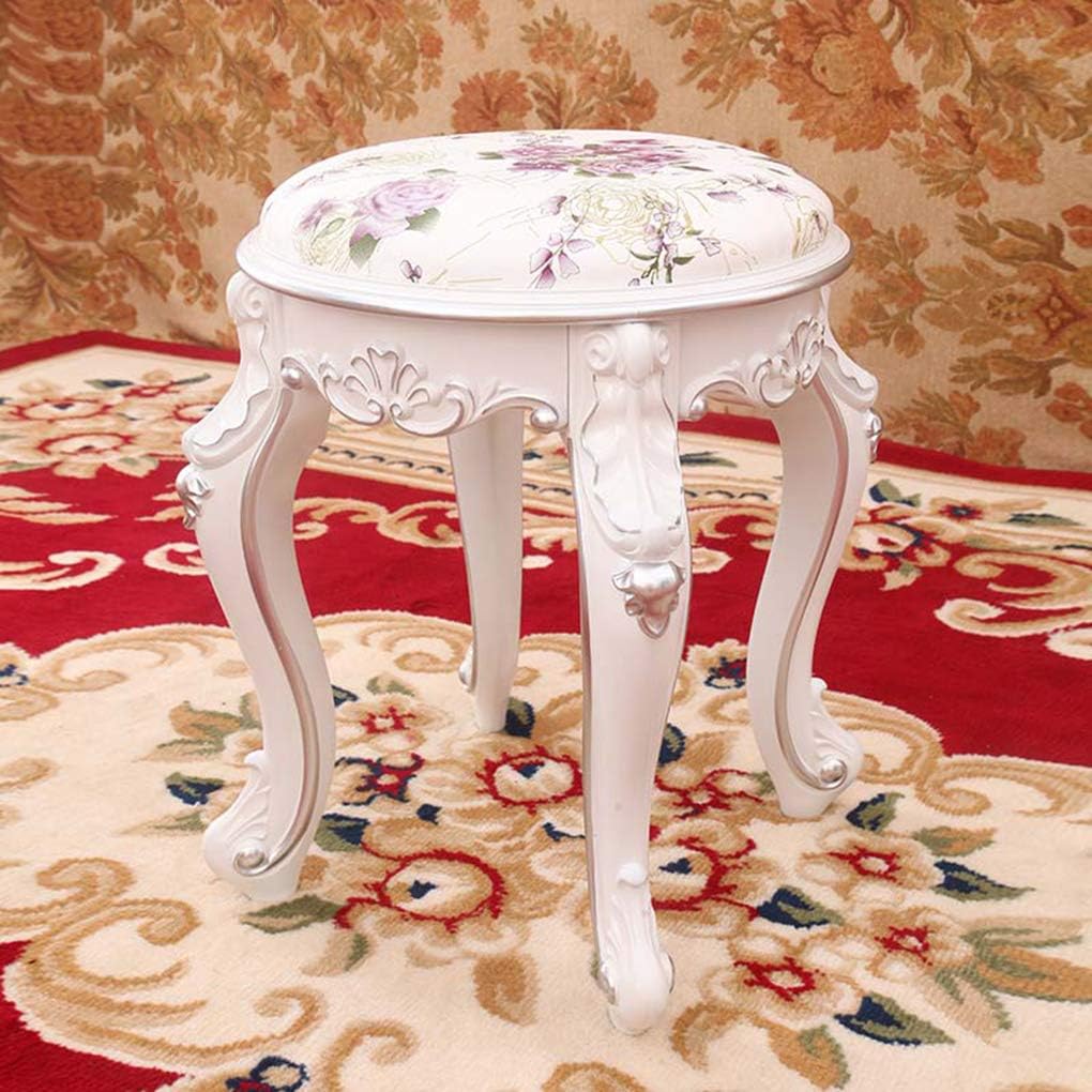 ●●Small Bench, Many Uses: Being both comfortable and lightweight, this versatile stool serves many purposes. Easily move it wherever you need it—in the bathroom as a vanity stool, entryway as a shoe bench, living room as a footstool, or use it as a piano bench. It’s more useful than you think. ●●This compact design is perfect for small spaces and fits most decor. Modern appeal to any home, living room, bedroom, office, fashion closet, den, apartment and so on. ●●It can save you a lot of space, you can put it away under desk if you donot need. Specifications - Color: White leg and silver ivory white leg - Material: Leather, cloth, velvet - Measurements: diameter 35cm/13.77inch*height 45ch/17.71inch - Product Weight: 3.5kg - Load Capacity: 150kg/330 lbs - Intended rooms: Bedroom, Bathroom, Makeup Room Package Included: 1 x Vanity Stool